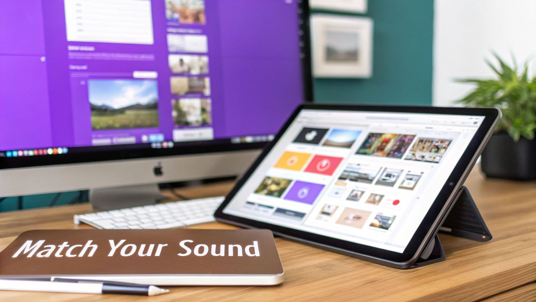 Everything you choose from here on out—fonts, colors, backgrounds—shapes how people connect with your music. Think about it: a gritty rock anthem with a delicate, flowing script font would feel completely off. The same goes for a soft acoustic ballad plastered over a chaotic, flashing background. The goal is to build a cohesive piece of art where every single visual element supports the song.