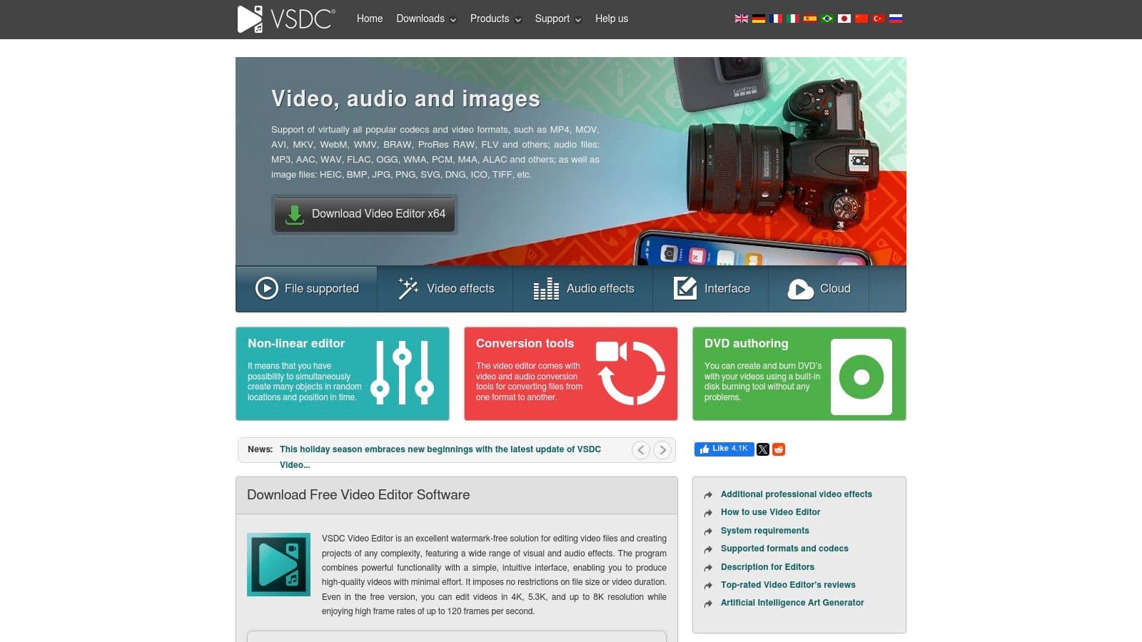 The advanced text editor offers masking and blending modes, opening doors to creative text effects. Export options are plentiful, supporting various formats like MP4, AVI, and MKV, catering to different platform requirements. While VSDC offers remarkable capabilities for a free tool, it's worth noting that the software has a steeper learning curve than some simpler alternatives. The interface can be initially confusing for beginners, and direct support is limited. Additionally, VSDC is currently Windows-only software, limiting its accessibility for Mac and Linux users.