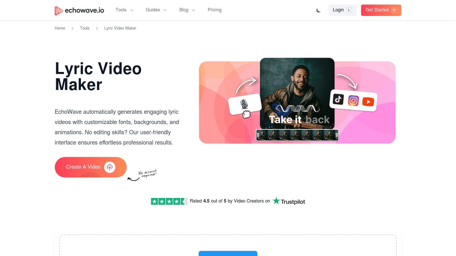 Jumping straight into a project without the friction of a sign-up form is a creator's dream. Echowave gets this, offering a streamlined, no-login-required experience that lets you start building your lyric video the moment inspiration strikes. This online tool is all about giving you the raw materials and a blank canvas, perfect for artists who prefer hands-on control over automated magic.