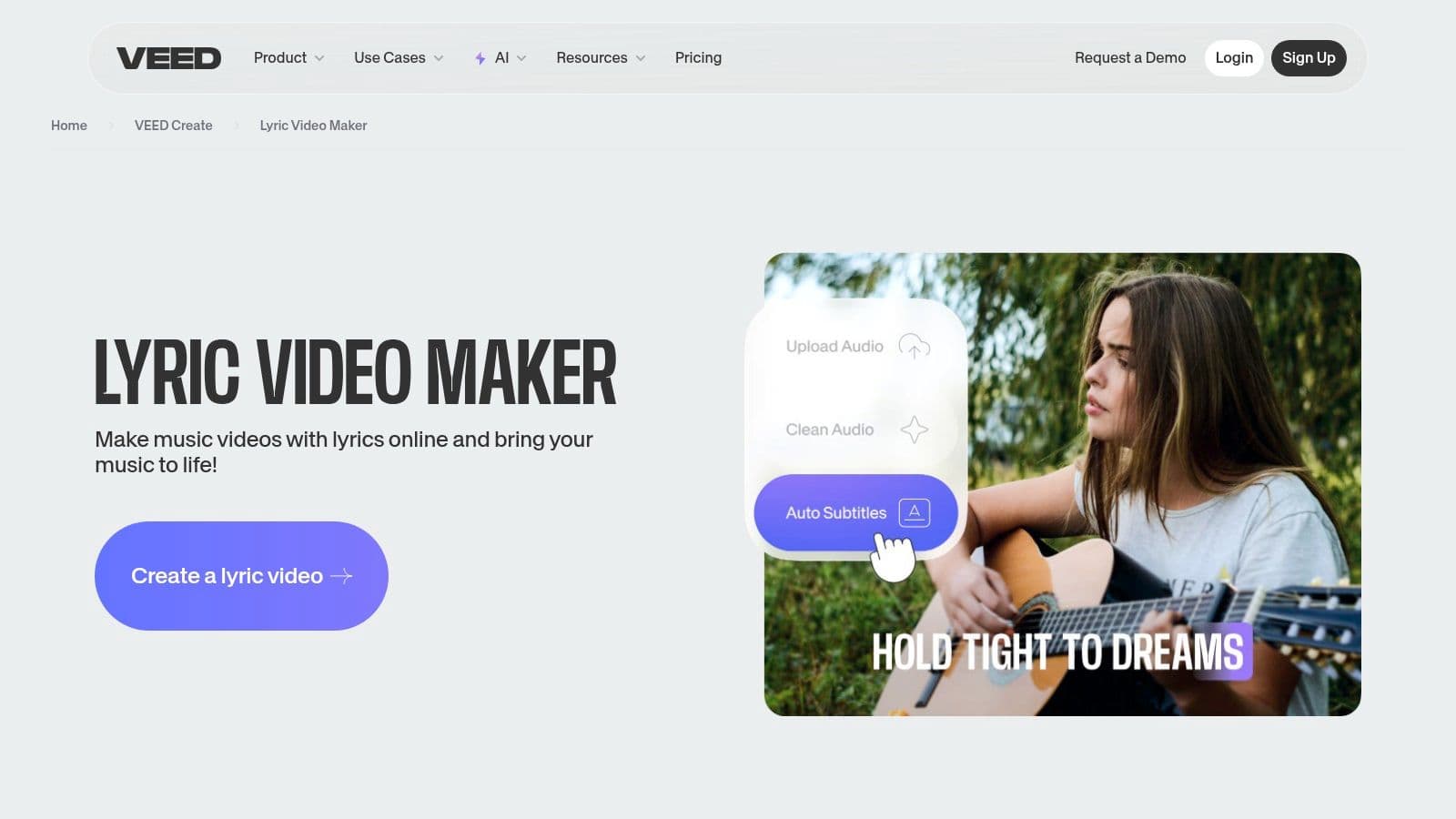 If you're looking for a Swiss Army knife of online video editing that also happens to be a fantastic lyric video generator, VEED.IO is your destination. It's less of a specialized tool and more of a full-fledged creative suite that lives in your browser. Its power lies in its versatility; you can start with a simple track and text, but quickly find yourself adding dynamic music visualizers and slick transitions without ever feeling overwhelmed.