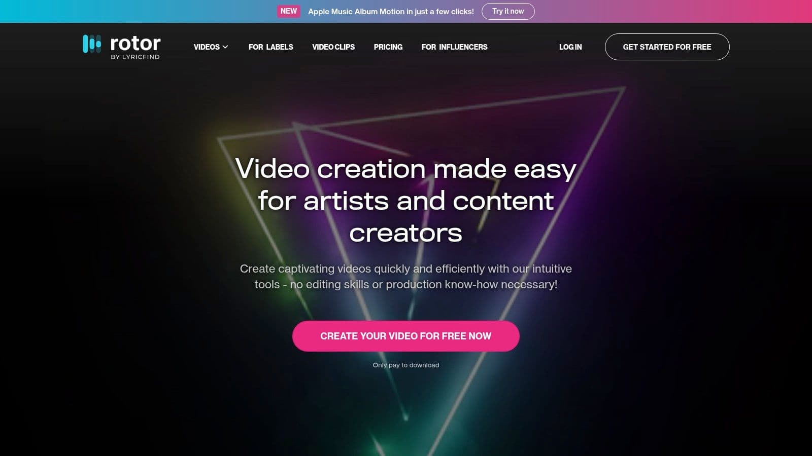 | Rotor Videos | AI lyric sync, customizable texts, stock footage library | ★★★★ High quality output | Affordable plans | Musicians, quick creators 👥 | AI-driven sync, extensive visuals |