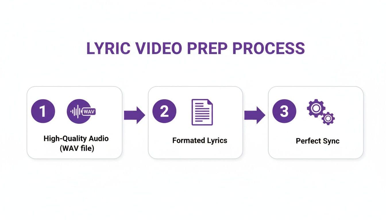 Before you even think about fancy animations or slick visuals, you have to get your raw materials in order. Trust me, a polished final video is impossible without a solid foundation, and for lyric videos, that means two things: clean audio and perfectly formatted text. Nail this part, and you'll save yourself a world of headaches down the road.