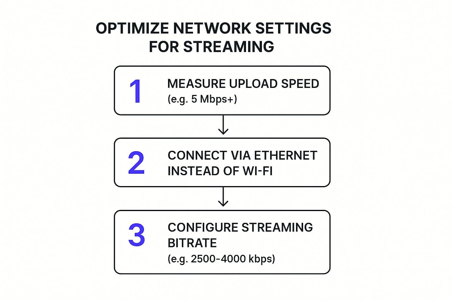 Don't have that? No sweat. You can still have an awesome-looking stream at 720p, which only requires about 3-4 Mbps of upload speed. It still looks fantastic on most devices, and your viewers will appreciate the stability.